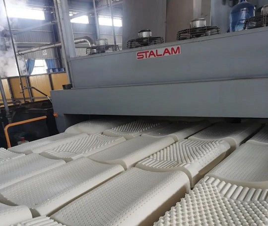 愛德福公司乳膠枕頭生產(chǎn)線完成自動(dòng)化改造,產(chǎn)能增幅達(dá)32%。吳鵬 攝