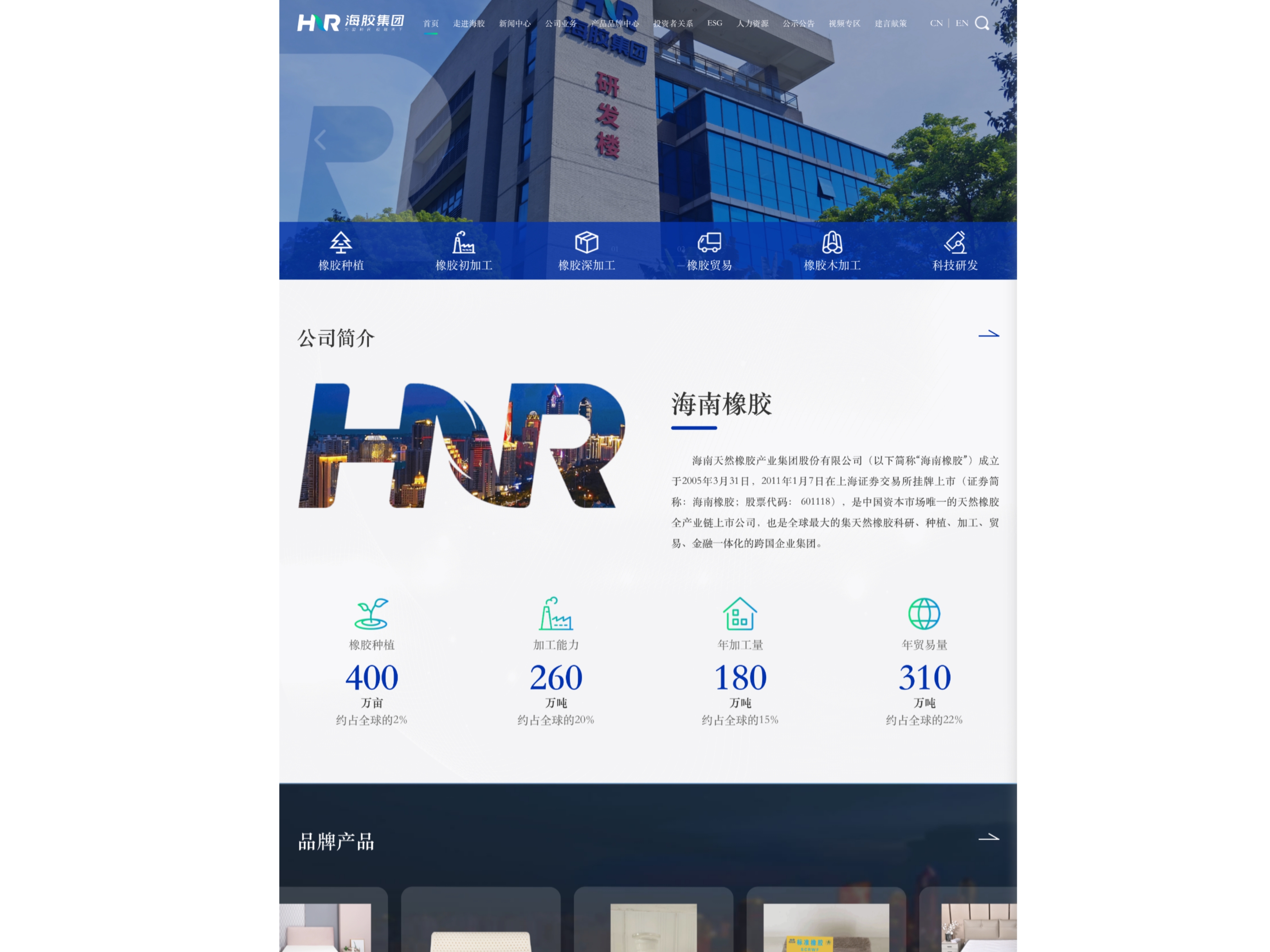 近日,海南天然橡膠產業集團股份有限公司(以下簡稱海南橡膠)官網升級上線。新版官網界面風格更為簡潔清新,各項功能更加清晰、便捷,并新增了英文版閱讀體驗,推動企業形象提升及品牌建設工作,擴大品牌影響力。全新升級的海南橡膠官網(http:wwwhirubcn)以純白和深藍為主色調,色調更為明快、清新,以橡膠全產業鏈為展示思路